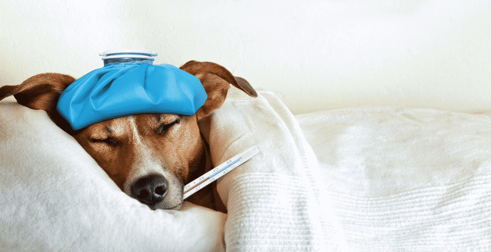 Chó sốt cao 39.5-40°C, thở gấp, tim đập nhanh 120-150 nhịp/phút, mắt lờ đờ, má hóp, đi loạng choạng, run rẩy mệt mỏi. Mũi khô, da mất nước, giảm cân nhanh – lúc này nguy hiểm lắm!