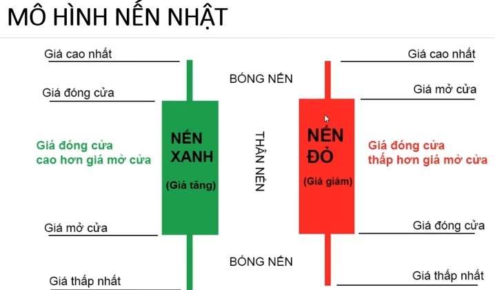 Biểu đồ nến Nhật là một công cụ phổ biến trong phân tích kỹ thuật tài chính, giúp người đầu tư dễ dàng nắm bắt biến động giá trong một khoảng thời gian nhất định. Mỗi cây nến trên biểu đồ thể hiện bốn thông tin quan trọng: giá mở cửa, giá đóng cửa, giá cao nhất và giá thấp nhất. Thân nến cho biết phạm vi giữa giá mở và đóng cửa, còn bóng nến thể hiện mức giá cao nhất và thấp nhất trong phiên giao dịch.