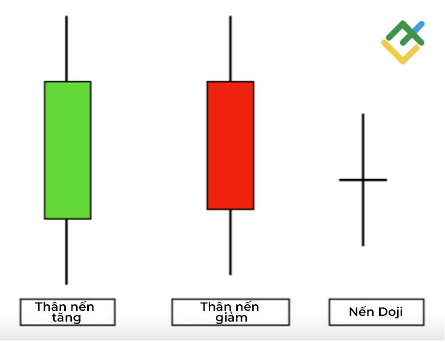 Thân nến là thông tin chủ chốt, cho biết giá mở cửa và giá đóng cửa trong một khoảng thời gian nhất định. Ví dụ, trong biểu đồ 15 phút, mỗi cây nến Nhật thể hiện biến động giá trong suốt 15 phút đó. Nếu thân nến có màu xanh, điều đó có nghĩa là giá đóng cửa cao hơn giá mở cửa, và ngược lại với nến đỏ.