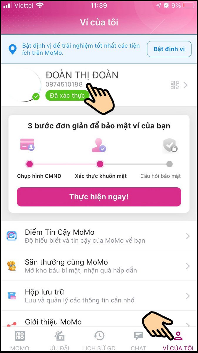 Nếu bạn đang tìm cách đổi tên trên ứng dụng MoMo nhưng chưa xác thực danh tính, hãy làm theo các bước đơn giản dưới đây. Đầu tiên, bạn cần đăng nhập vào ứng dụng và chọn mục “Ví của tôi”. Sau đó, bấm vào tên của bạn để bắt đầu quá trình chỉnh sửa.