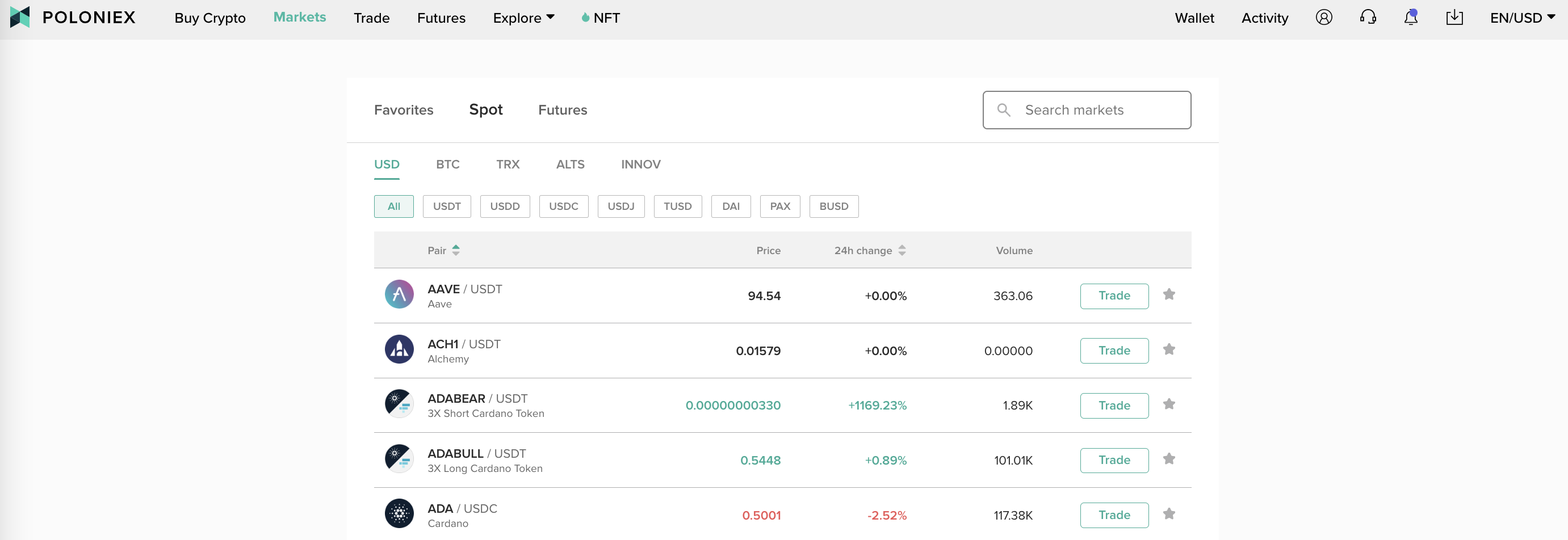 Sau đó, bạn tìm kiếm đồng coin muốn nạp, ví dụ như ETH hoặc AAVE, rồi chọn đúng loại tài sản đó. Poloniex sẽ hiển thị địa chỉ ví tương ứng hoặc mã QR để bạn có thể sao chép hoặc quét bằng ví tiền điện tử cá nhân của mình. Việc này giúp bạn gửi tiền từ ví cá nhân vào tài khoản Poloniex một cách chính xác và nhanh chóng.