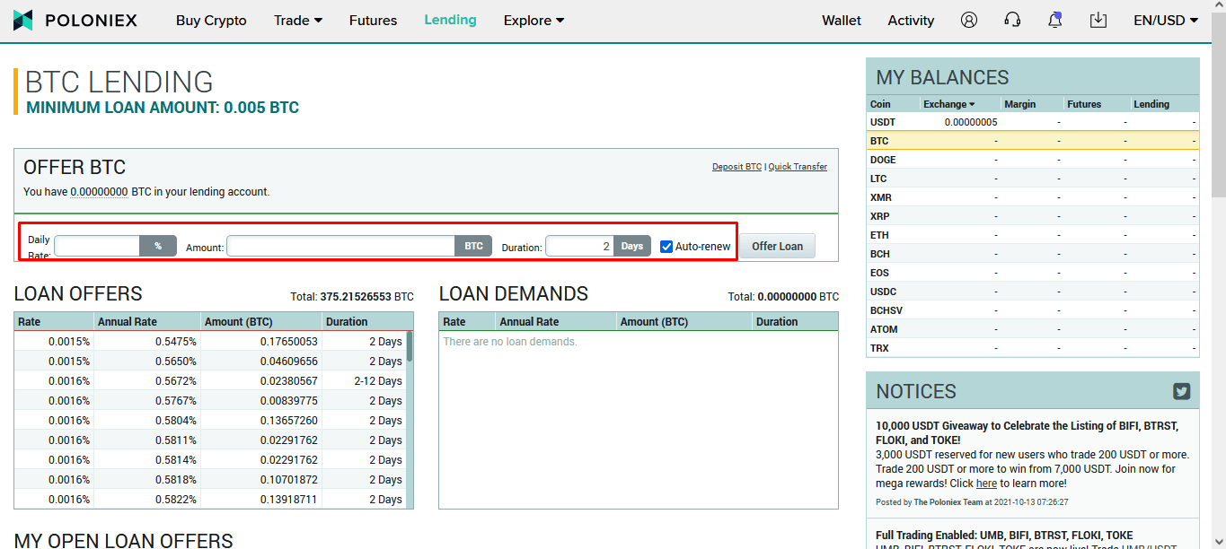 Điểm cộng nữa là Poloniex miễn phí khi bạn nạp tiền vào tài khoản, nhưng khi rút tiền thì sẽ có phí tùy thuộc vào loại token hoặc coin bạn rút. Ngoài ra, nếu bạn tham gia cho vay (lending) trên sàn, Poloniex sẽ thu 15% lợi nhuận từ hoạt động này như một khoản phí dịch vụ.