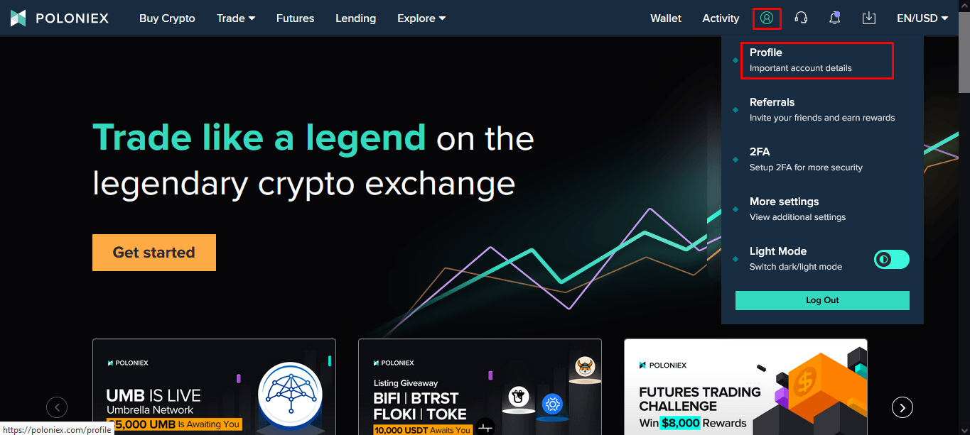 Việc xác thực tài khoản trên sàn Poloniex là bước quan trọng giúp bảo vệ an toàn cho tài khoản của bạn cũng như tuân thủ các quy định về phòng chống rửa tiền (KYC). Khi đăng ký xong, bạn cần vào phần Profile trong mục Settings, sau đó chọn Upgrade để bắt đầu quá trình xác minh danh tính.