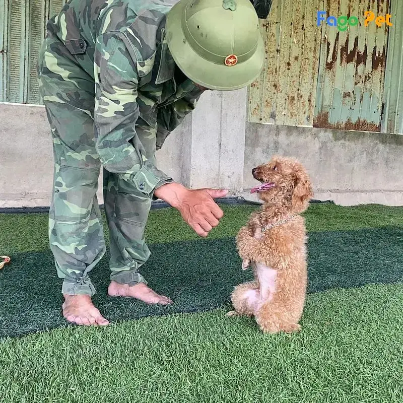 Để dạy chó đứng lên, đưa thức ăn lên ngang tầm mũi chó rồi bước lùi từ từ. Khi chó dí mũi theo và đứng lên, hô lệnh “đứng” và thưởng cho nó. Lặp lại quy trình này khoảng 5-10 lần để chó hiểu và ghi nhớ lệnh.