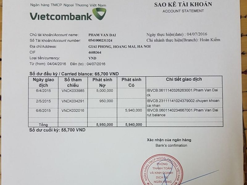 Ngoài ra, đối với tài khoản ngoại tệ, mức phí cũng rất hợp lý, chỉ từ 0.5 USD/trang. Vietcombank còn hỗ trợ in sao kê cho cả tài khoản tiền vay, vì vậy bạn có thể quản lý thông tin tài chính của mình một cách nhanh chóng và tiện lợi.