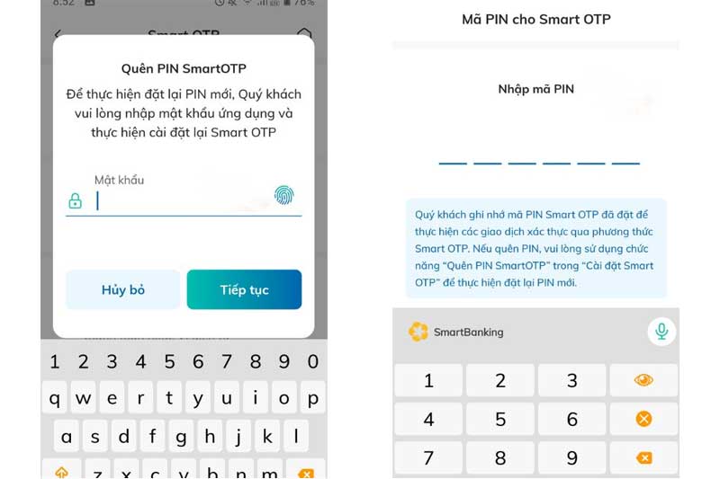 Khi vào đây, bạn sẽ thấy lựa chọn “Quên PIN Smart OTP”. Nhấp vào đó và tiến hành quét khuôn mặt để xác thực danh tính của mình. Sau khi xác thực thành công, bạn chỉ cần tạo mã PIN OTP mới. Lưu ý rằng việc đặt mã PIN mới nên được thực hiện cẩn thận, đảm bảo rằng nó đủ mạnh để bảo vệ tài khoản.