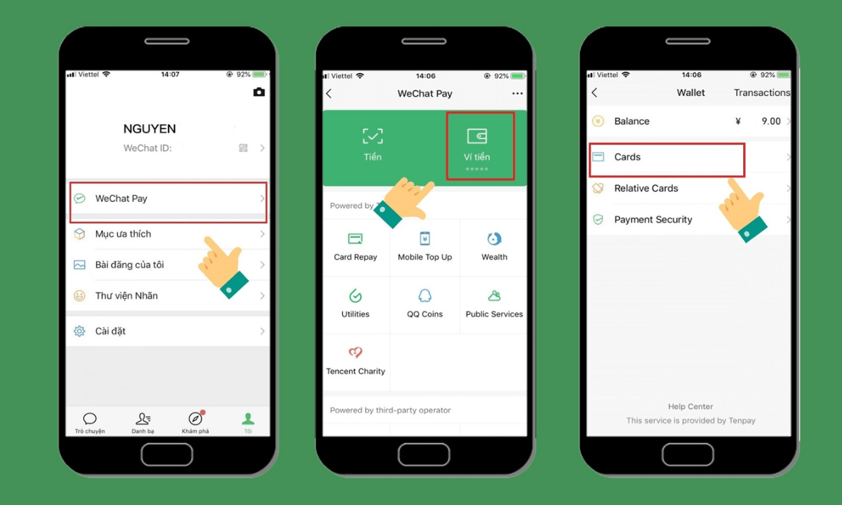 Việc liên kết thẻ ngân hàng Việt Nam với WeChat giúp bạn dễ dàng sử dụng ví điện tử WeChatPay để thanh toán, chuyển tiền hay nạp tiền nhanh chóng. Đầu tiên, bạn cần có tài khoản WeChat đã kích hoạt tính năng WeChatPay, có thể kiểm tra bằng cách vào phần “Me” và xem có biểu tượng “Wallet” hay không. Nếu có, bạn đã có thể bắt đầu liên kết thẻ ngân hàng của mình.
