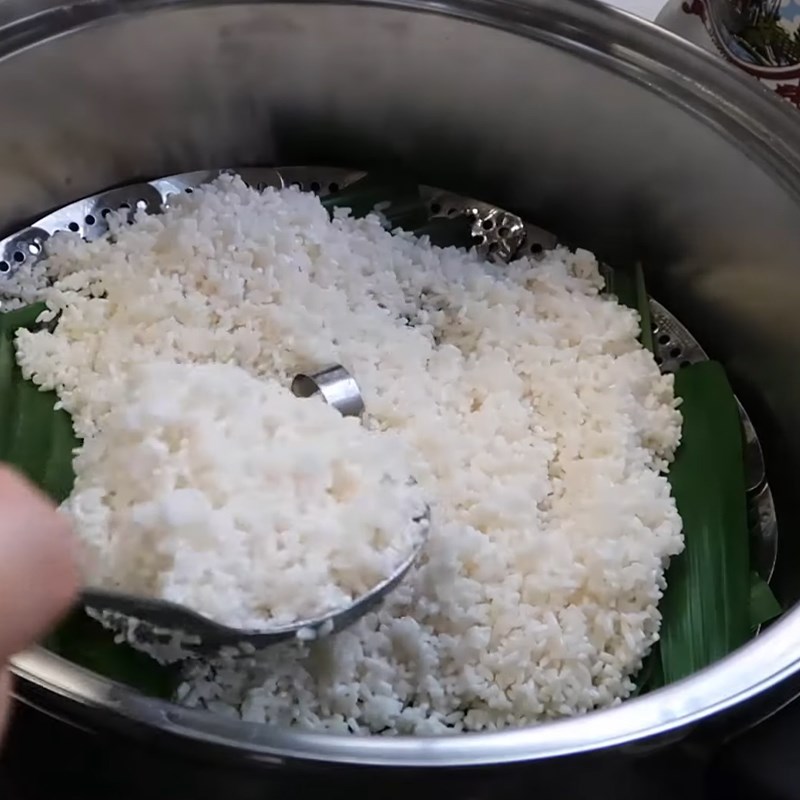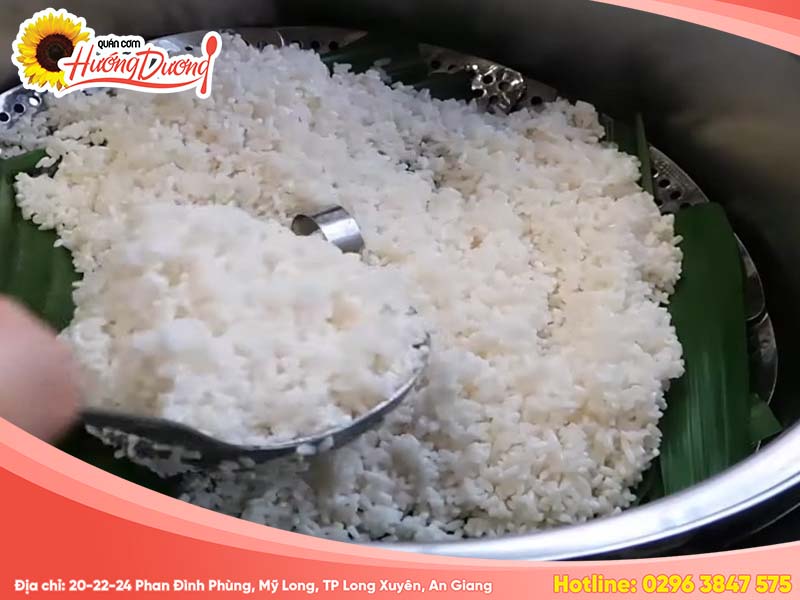 Khi bắt đầu hấp, hãy chú ý đến lượng nước trong nồi. Nếu thấy nước cạn, nhanh chóng thêm một ít nước vào xửng để tránh tình trạng cơm khô. Trong quá trình hấp, cần mở nồi để đảo cơm 1-2 lần; việc này giúp cơm chín đều và không bị nhão. Hãy nhớ đeo găng tay để tránh bị bỏng khi mở nắp nồi.