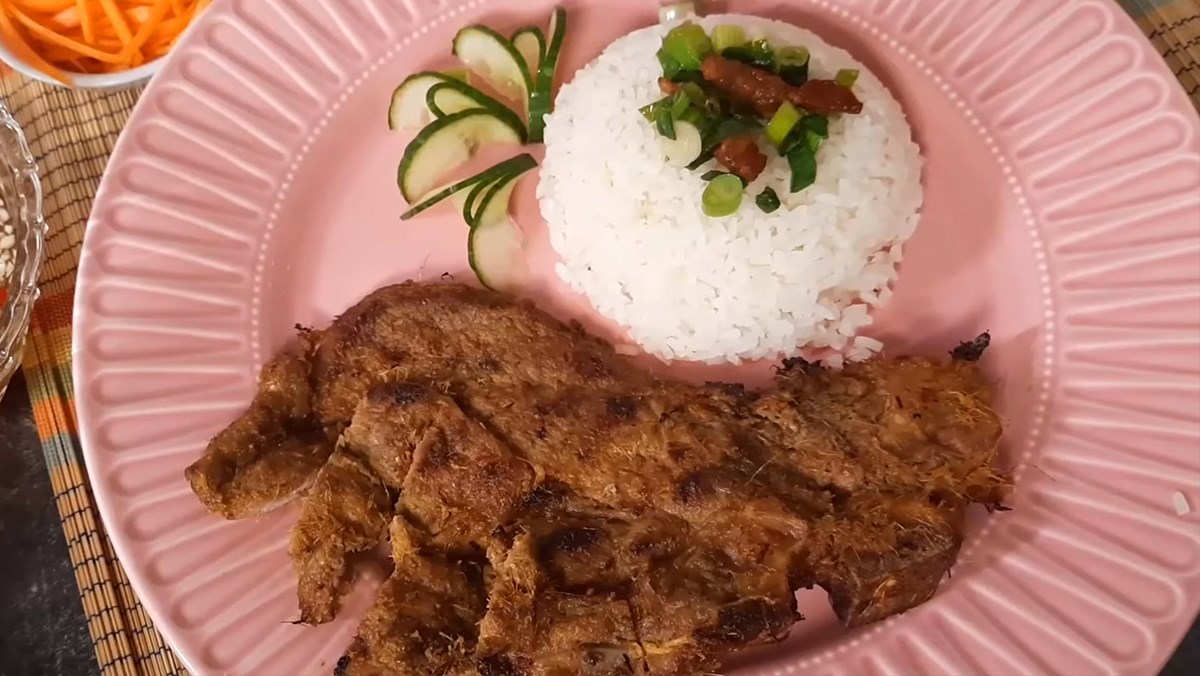 Trong khi đó, bạn có thể chế biến thịt. Thịt nạc dăm và ba chỉ được ướp gia vị với tỏi, hành và sả, sau đó nướng hoặc xào cho thơm. Khi cơm đã chín, bổ sung thêm lá dứa sẽ giúp món cơm tấm có mùi thơm đặc trưng. Cuối cùng, trình bày cơm tấm lên đĩa kèm thịt và rau thơm, chắc chắn sẽ khiến bữa ăn của bạn thêm phần hấp dẫn!