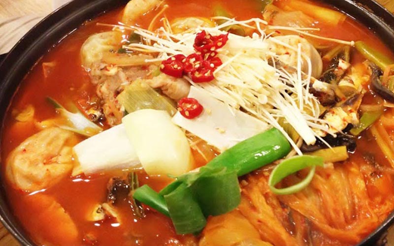 Đầu tiên, đuôi bò được hầm nhừ, tạo ra nước dùng ngọt nhẹ. Thịt bắp bò cũng trở nên mềm mại khi nhúng vào nước lẩu nóng. Ngoài ra, kim chi là linh hồn của món ăn, mang đến vị cay nồng, chua chua rất đặc trưng của ẩm thực Hàn Quốc.