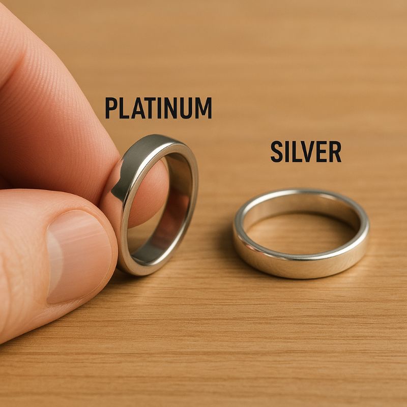 Một cách phân biệt khác là kiểm tra trọng lượng. Bạch kim nặng hơn so với bạc và vàng trắng, điều này có thể giúp bạn nhận ra ngay khi cầm trên tay. Ngoài ra, bạn có thể tìm kiếm các dấu hiệu và tem xác nhận chất lượng như PT950, PT900, hay PT999, đại diện cho tỷ lệ phần trăm của bạch kim trong hợp kim.