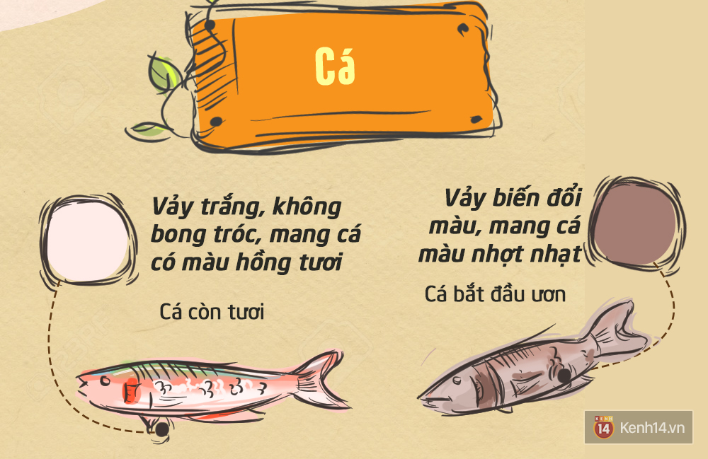 Đối với thịt, bạn hãy chú ý đến màu sắc. Thịt tươi ngon thường có màu đỏ tươi và không có mùi lạ như ôi thiu hay thuốc kháng sinh. Khi mua thịt bò, đảm bảo rằng thớ thịt khô ráo, còn với thịt lợn thì chọn loại có màu sắc đều, không có dấu hiệu bất thường. Đặc biệt, nhớ kiểm tra da bên ngoài của cá hoặc gia cầm khi mua, nó phải láng mịn, không có vết bẩn hay dấu hiệu mốc.