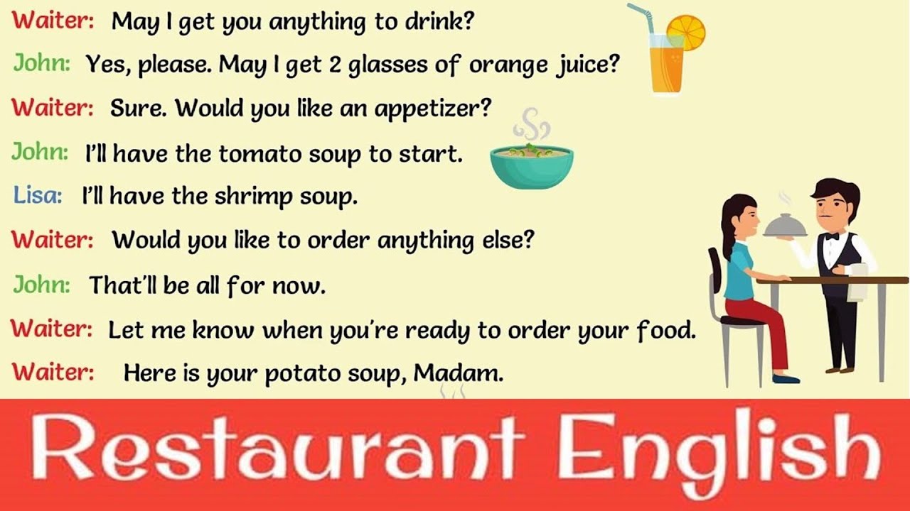Khi đến nhà hàng hoặc quán ăn, việc sử dụng tiếng Anh để gọi món rất quan trọng, đặc biệt là với trẻ nhỏ. Một số mẫu câu đơn giản như “Can I see the menu, please?” sẽ giúp các bạn nhỏ tự tin hơn khi giao tiếp. Nếu bạn muốn nhờ phục vụ đem nước, hãy nói “Can I get a glass of water, please?” để họ hiểu yêu cầu của bạn.