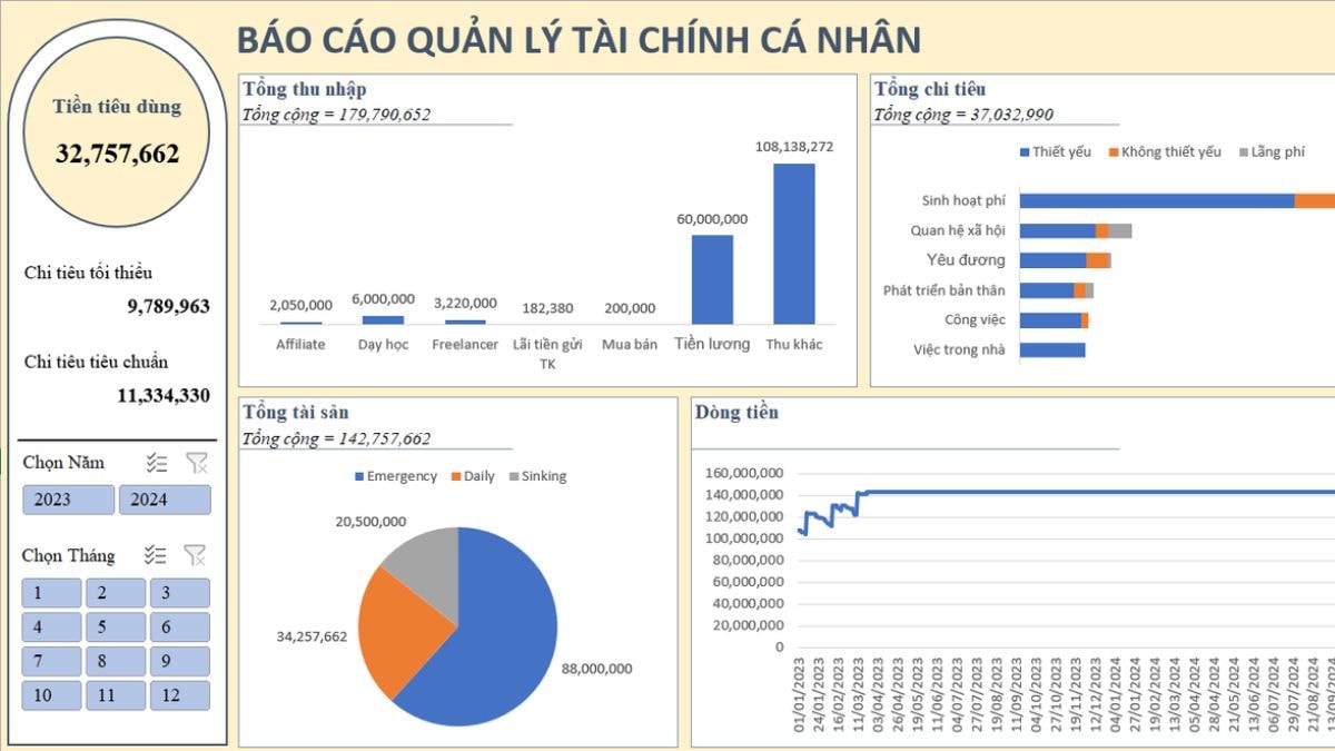 Bạn có thể dễ dàng tự tạo bảng chi tiêu cá nhân đơn giản hoặc sử dụng các mẫu có sẵn để tiết kiệm thời gian. Mẫu Excel quản lý chi tiêu cá nhân thích hợp cho mọi đối tượng, từ nhân viên văn phòng đến chủ doanh nghiệp nhỏ, góp phần giúp bạn kiểm soát tài chính cá nhân một cách minh bạch và khoa học. Đây là bước quan trọng để xây dựng thói quen chi tiêu thông minh và đạt được các mục tiêu tài chính trong tương lai.