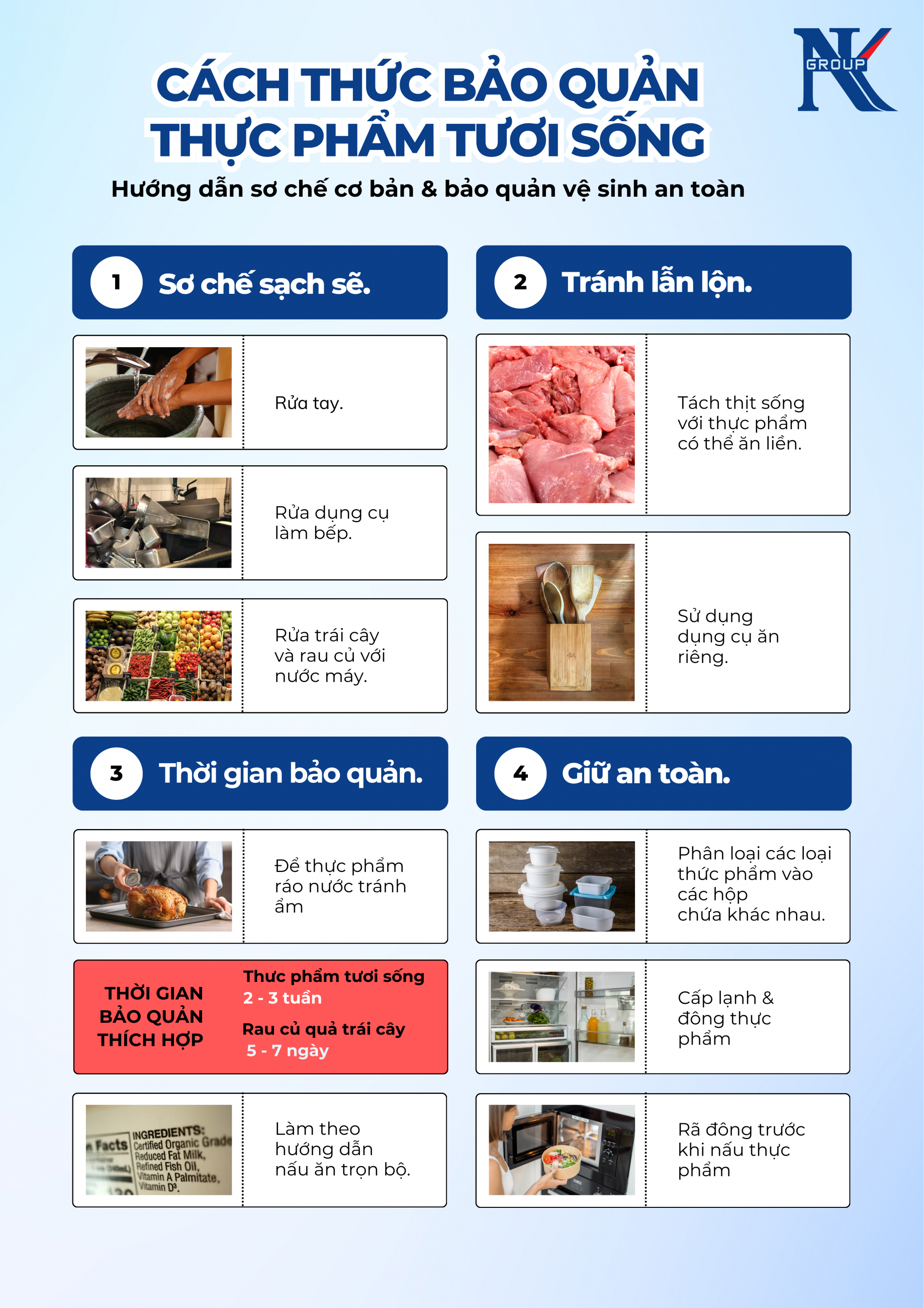 Hướng dẫn cách sơ chế thực phẩm tươi sống an toàn