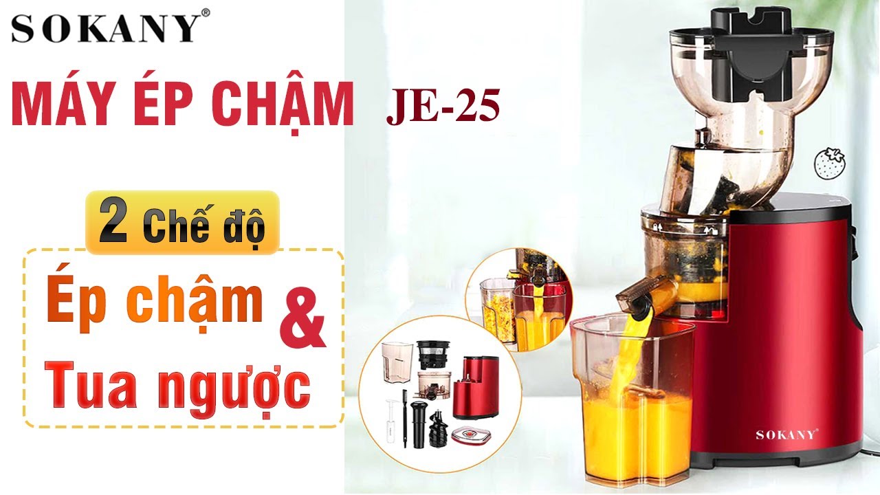 Máy ép chậm Sokany JE-25 là một trong những thiết bị tuyệt vời cho những ai yêu thích nước trái cây tươi mát. Thân máy chứa mô tơ mạnh mẽ với công suất 300W, hoạt động nhẹ nhàng ở tốc độ chỉ 43 vòng/phút. Điều này giúp nước ép giữ nguyên màu sắc, hương vị và dinh dưỡng, mang đến cho bạn những ly nước ép thơm ngon, sánh mịn.
