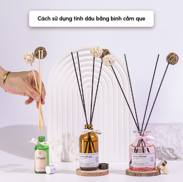 Sử dụng tinh dầu cắm que rất đơn giản. Bạn chỉ cần cắm các que gỗ nhỏ vào lọ tinh dầu và chờ khoảng 30 phút đến 1 giờ để que hấp thụ tinh dầu. Sau đó, hương thơm sẽ từ từ tỏa ra khắp không gian, tạo cảm giác thư giãn và thoải mái. Đây là lựa chọn lý tưởng cho mọi gia đình, giúp nâng cao chất lượng không khí sống.