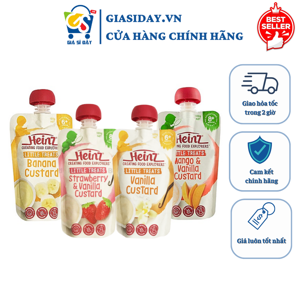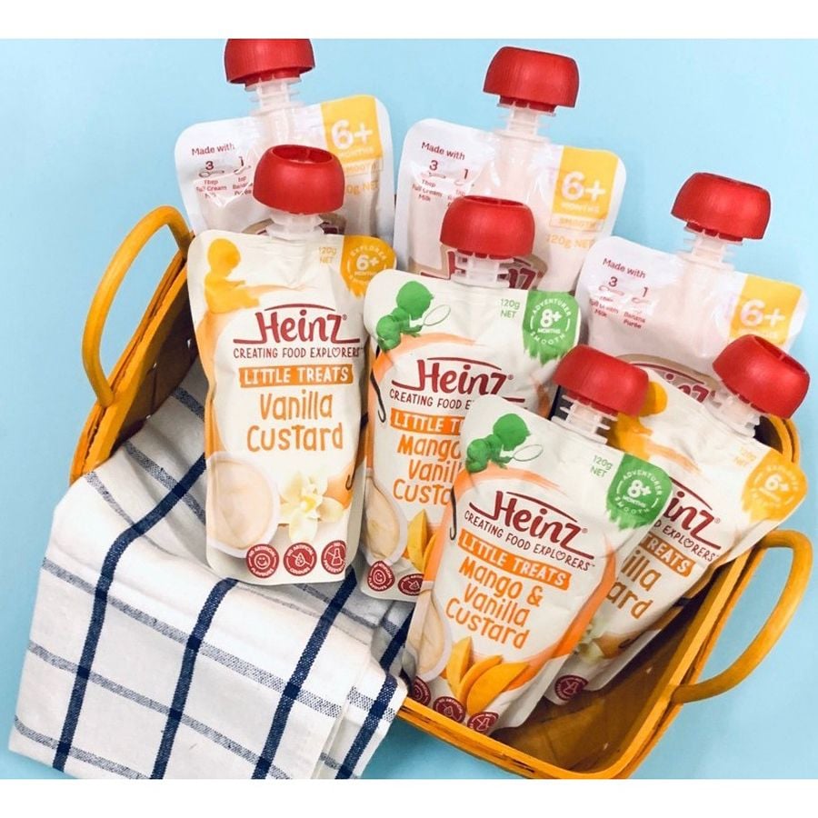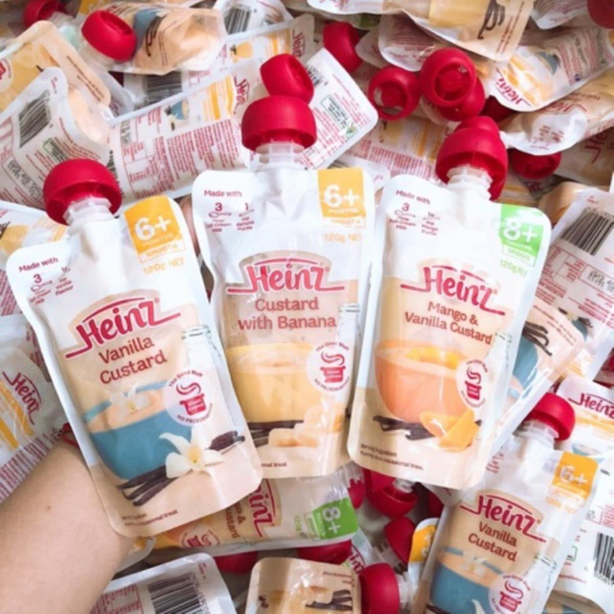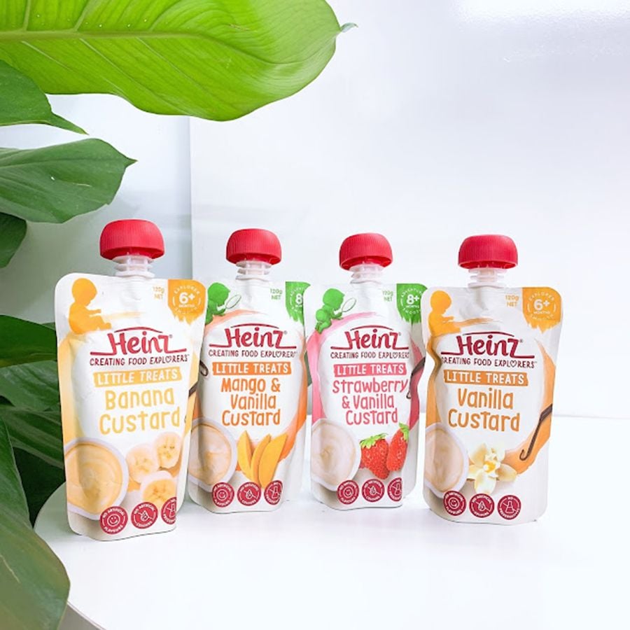 Trái cây nghiền Heinz có nhiều hương vị như lê, táo, chuối và dâu, phù hợp cho trẻ từ 4 tháng tuổi trở lên. Nếu bạn định cho bé ăn nóng, hãy sử dụng lò vi sóng, nhưng đừng quên kiểm tra nhiệt độ trước khi cho bé thưởng thức. Điều này rất quan trọng để tránh bỏng.
