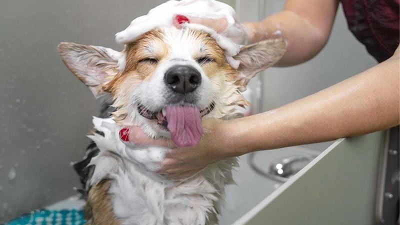 Khi tắm cho chó, bạn nhớ chọn xà phòng chuyên dụng dành riêng cho thú cưng nhé, tuyệt đối tránh dùng dầu gội của người vì pH da chó khác hẳn, dễ gây kích ứng và khô da lắm.