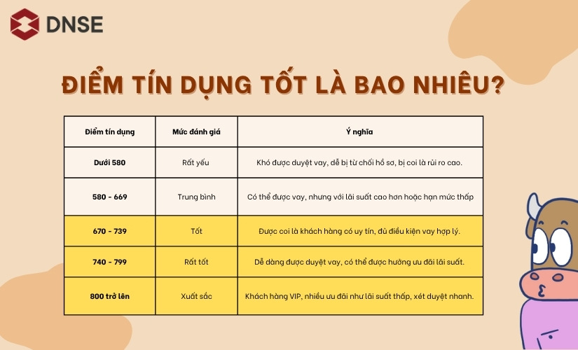 Đối với những ai vay lần đầu và chưa có lịch sử tín dụng, điểm tín dụng khoảng 600 được xem là ngưỡng khởi đầu thuận lợi. Một điểm tín dụng cao hơn, từ 670 trở lên, sẽ giúp bạn dễ dàng tiếp cận các khoản vay có điều kiện tốt hơn, tránh những rủi ro không đáng có.