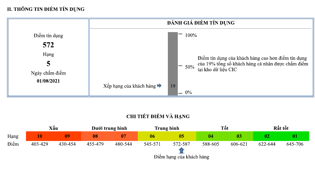 Điểm tín dụng của bạn là 572, nằm trong khoảng từ 570 đến 679, được xem là mức tín dụng trung bình. Với điểm tín dụng này, khả năng vay vốn của bạn vẫn có, nhưng các tổ chức tài chính sẽ chú ý nhiều hơn tới hồ sơ tài chính và khả năng trả nợ của bạn. Điều này có thể đồng nghĩa với việc bạn sẽ phải đối mặt với lãi suất cao hơn hoặc nhiều điều kiện khắt khe hơn khi vay.