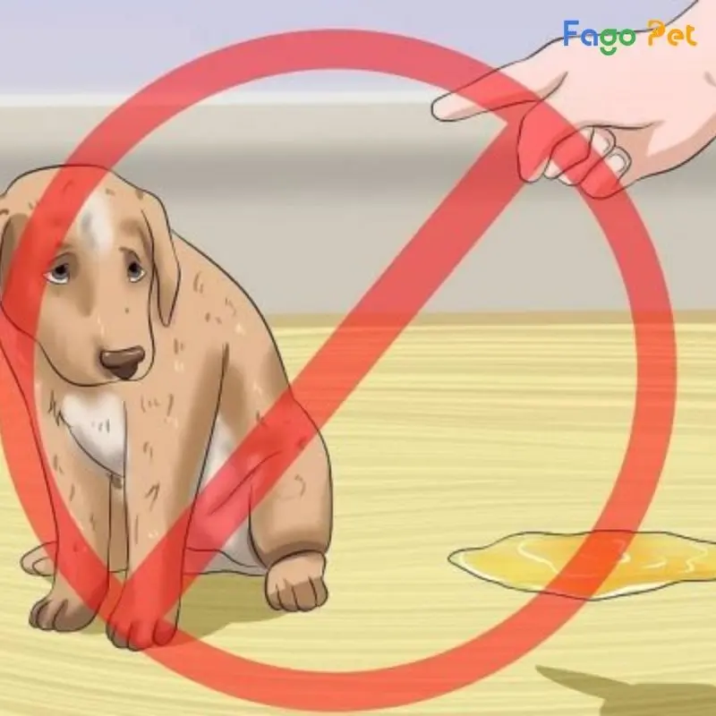 Khi chó đi vệ sinh sai chỗ, điều quan trọng nhất là bạn không nên đánh mắng chó vì chúng sẽ không hiểu được mối liên hệ giữa hành động và sự phạt. Thay vào đó, hãy túm nhẹ cổ chó, mắng nhẹ “Tè bậy” rồi dẫn chó đến khu vực vệ sinh đúng và để chó ngồi ở đó trong 1-2 phút.