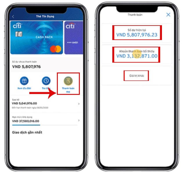 Khi sử dụng thẻ tín dụng Citibank, bạn có nhiều phương thức thanh toán tiện lợi để lựa chọn. Một trong những cách phổ biến nhất là sử dụng ứng dụng UOB TMRW Vietnam. Bạn chỉ cần đăng nhập vào ứng dụng, chọn mục “Thẻ tín dụng” và tiến hành thanh toán một cách nhanh chóng. Số tiền tối thiểu cho một lần thanh toán là 50.000 đồng, còn tối đa là 20.000.000 đồng, tùy thuộc vào dư nợ của bạn.