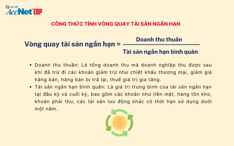 Tài sản ngắn hạn là một phần quan trọng trong báo cáo tài chính của doanh nghiệp, giúp phản ánh khả năng thanh khoản và khả năng đáp ứng nhu cầu vốn lưu động. Để tính toán tài sản ngắn hạn, chúng ta sử dụng công thức: Tài sản ngắn hạn = Tiền và các khoản tương đương tiền + Đầu tư tài chính ngắn hạn + Các khoản phải thu ngắn hạn + Hàng tồn kho + Tài sản ngắn hạn khác.