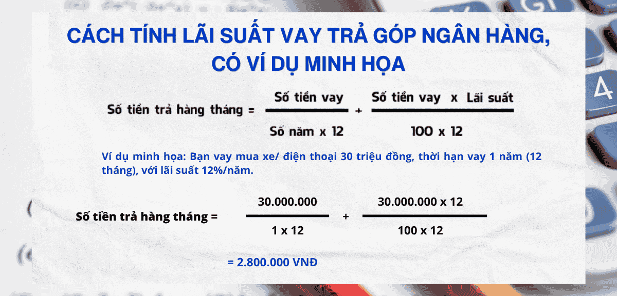 Hướng dẫn tính tiền vay trả góp ngân hàng chi tiết