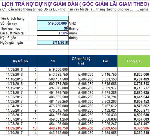Nếu bạn muốn tiếp tục vay theo hình thức trả nợ giảm dần, các tháng tiếp theo, tiền lãi sẽ được tính trên dư nợ còn lại. Công cụ tính toán lãi suất như bảng tính của Techcombank có thể giúp bạn dễ dàng theo dõi và lập kế hoạch trả nợ theo từng kỳ hạn.