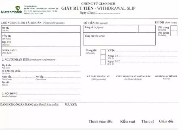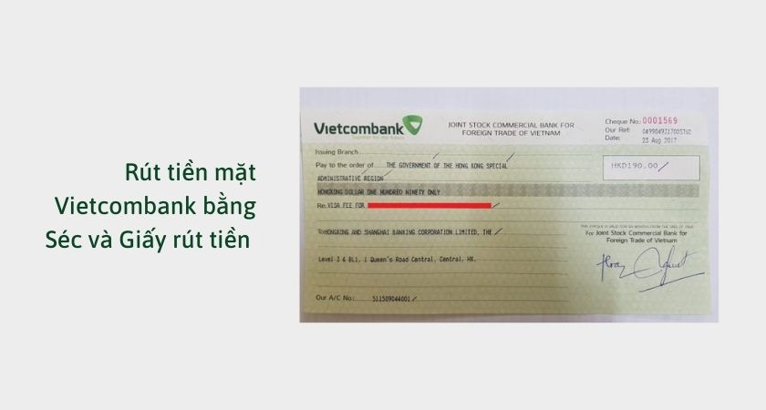 Để rút tiền mặt từ séc ngân hàng Vietcombank, bạn cần thực hiện một vài bước đơn giản. Đầu tiên, hãy chuẩn bị séc đã được điền đầy đủ thông tin cùng với giấy tờ tùy thân như CMND hoặc hộ chiếu. Sau đó, bạn đến trực tiếp chi nhánh của Vietcombank trong giờ làm việc.