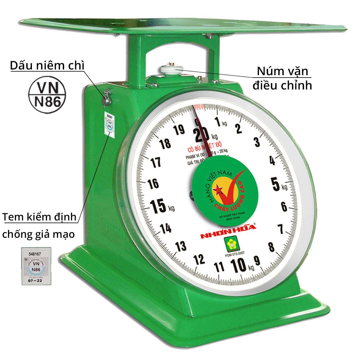 Khi bạn lựa chọn cân Nhơn Hòa, bạn sẽ yên tâm với độ chính xác và độ bền của sản phẩm, vì tất cả đều được kiểm định theo tiêu chuẩn ĐLVN 30:2009 và phù hợp với quy chuẩn quốc tế OIML R76-1:2006. Các dòng sản phẩm như cân đồng hồ Nhơn Hòa 12Kg, 15Kg, hay 150Kg đều có sẵn hàng và được bảo hành lên đến 12 tháng.