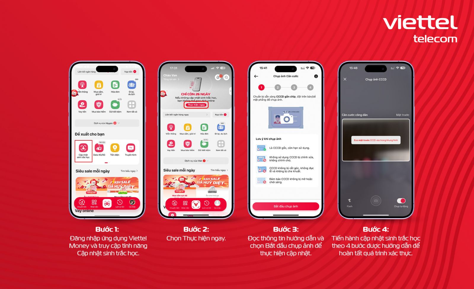 Ngoài ra, Viettel Money hỗ trợ hai hình thức cập nhật sinh trắc học là trên ứng dụng và trực tiếp tại các điểm giao dịch. Đừng quên rằng, việc hoàn tất cập nhật trước ngày 1/1/2025 không chỉ đảm bảo bạn có thể thực hiện các giao dịch an toàn mà còn mang lại những ưu đãi hấp dẫn từ Viettel Money. Hãy thực hiện ngay hôm nay để bảo vệ tài khoản của bạn nhé!