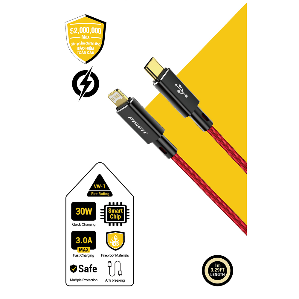Điểm nổi bật của cáp Pisen là sự cao cấp trong từng chi tiết. Đầu nối đúc chắc chắn, chống gãy gập, và chất liệu vỏ ngoài bằng nhựa cao cấp tạo nên sự bền bỉ và an toàn hơn cho thiết bị của bạn. Cáp dài 1000mm, vừa phải để dễ dàng mang theo và sử dụng mọi lúc mọi nơi.