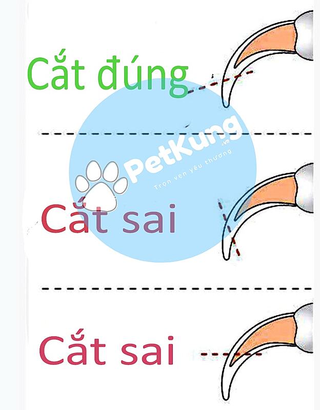 Ấn nhẹ đệm thịt để lộ móng, chỉ cắt phần trắng nhọn phía đầu, khoảng 1-2mm, tránh vùng tủy hồng chứa thần kinh và mạch máu. Nếu lỡ cắt trúng, dùng bột cầm máu hoặc bông gạc ấn nhẹ để cầm máu nhanh chóng.