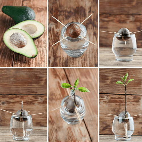 Nếu bạn chọn phương pháp ươm trong nước, hãy đặt hạt vào một cốc thủy tinh, dùng tăm để giữ hạt nổi trên mặt nước. Đặt cốc ở nơi có ánh sáng tốt và hãy nhớ thay nước thường xuyên. Sau khoảng 4-6 tuần, hạt sẽ nảy mầm và phát triển rễ. Khi cây cao khoảng 30 cm, bạn có thể bấm ngọn để kích thích sự phát triển của các nhánh.