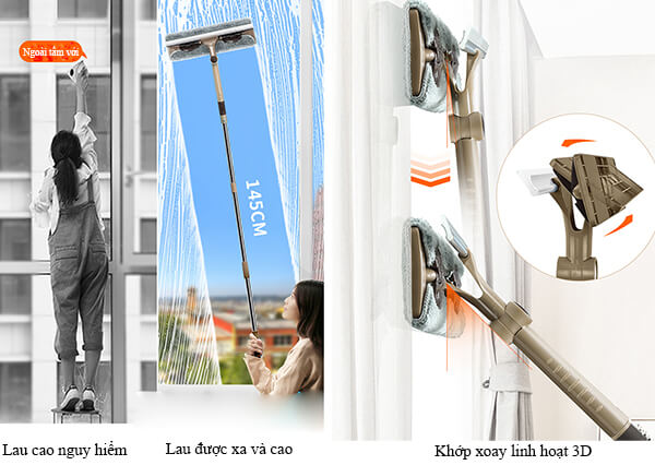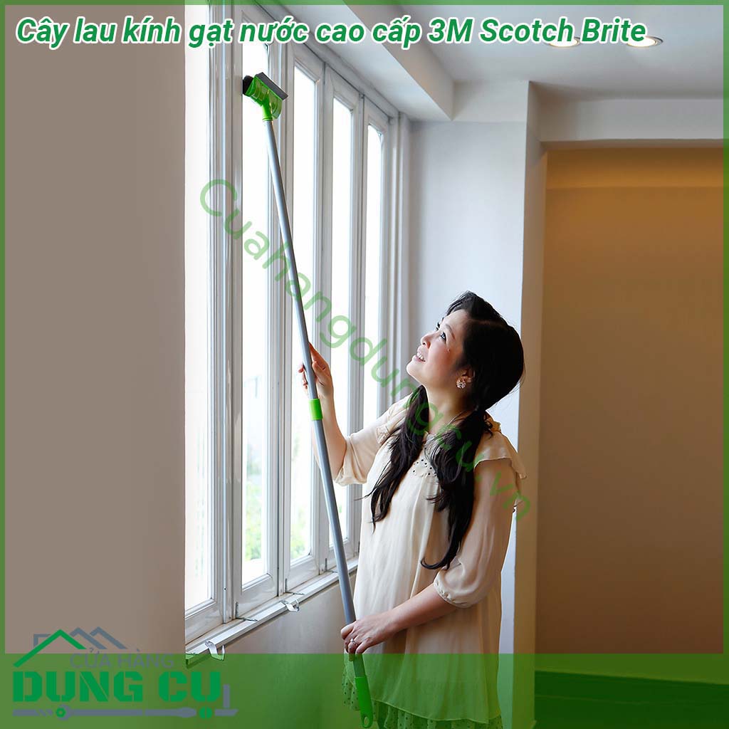 Điểm nổi bật của cây lau kính này chính là khả năng điều chỉnh độ dài từ 1,5m đến 3m, nhờ vào cây nối dài làm từ hợp kim nhôm siêu nhẹ và bền, giúp bạn dễ dàng tiếp cận những vị trí khó khăn mà không cần phải trèo cao. Với giá chỉ 35.000 đồng, nó thực sự là một lựa chọn tiết kiệm cho mọi gia đình.