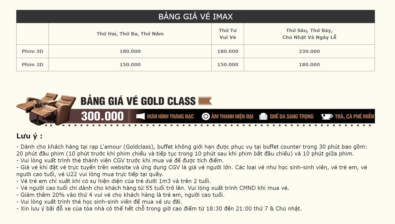 Đối với các nhóm khách đặc biệt như trẻ em, người già, sinh viên và thành viên CGV Young, giá vé cũng được ưu đãi riêng biệt. Ví dụ, trẻ em và người già thường có mức giá thấp hơn người lớn, dao động từ 60.000 đến 105.000 đồng tùy khung giờ. Sinh viên và thành viên CGV Young cũng được hưởng mức giá ưu đãi, thường thấp hơn hoặc bằng giá vé người lớn trong cùng khung giờ.