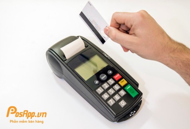 Khi sử dụng thẻ băng từ, việc quẹt thẻ qua khe đọc thẻ là một bước rất quan trọng để thực hiện thanh toán. Đầu tiên, bạn hãy chọn chức năng Thanh toán trên màn hình máy POS. Sau đó, đặt phần băng từ màu đen của thẻ vào khe đọc thẻ và quẹt thẻ dứt khoát từ đầu đến cuối khe. Đảm bảo không ngắt quãng để giúp máy đọc thông tin một cách chính xác.