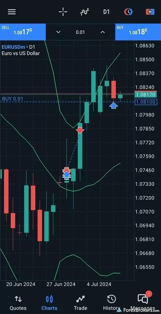 Trên điện thoại, việc cài đặt biểu đồ cũng rất dễ dàng. Bạn chỉ cần mở biểu tượng sản phẩm muốn giao dịch, chọn loại biểu đồ và thêm chỉ báo nếu cần. Việc phóng to, thu nhỏ biểu đồ cũng rất trực quan bằng thao tác hai ngón tay. Đây là cách giúp bạn linh hoạt theo dõi thị trường mọi lúc mọi nơi mà không bị giới hạn thiết bị. Với những bước đơn giản này, bạn sẽ có một biểu đồ trực quan, hỗ trợ đắc lực cho quyết định giao dịch trên Exness.