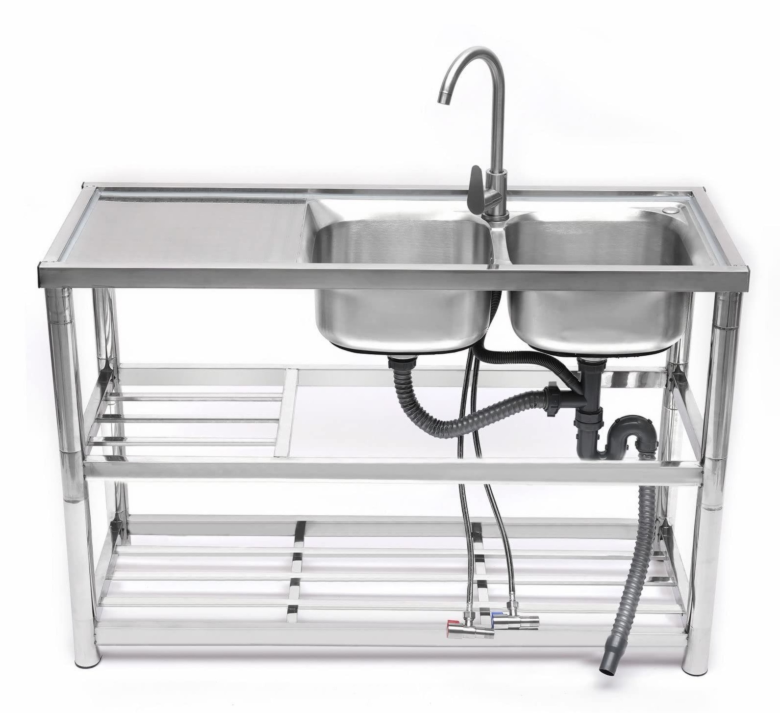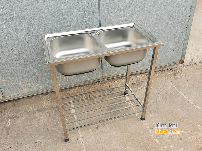 Chậu rửa bát inox đôi có chân bằng thép không gỉ bền bỉ