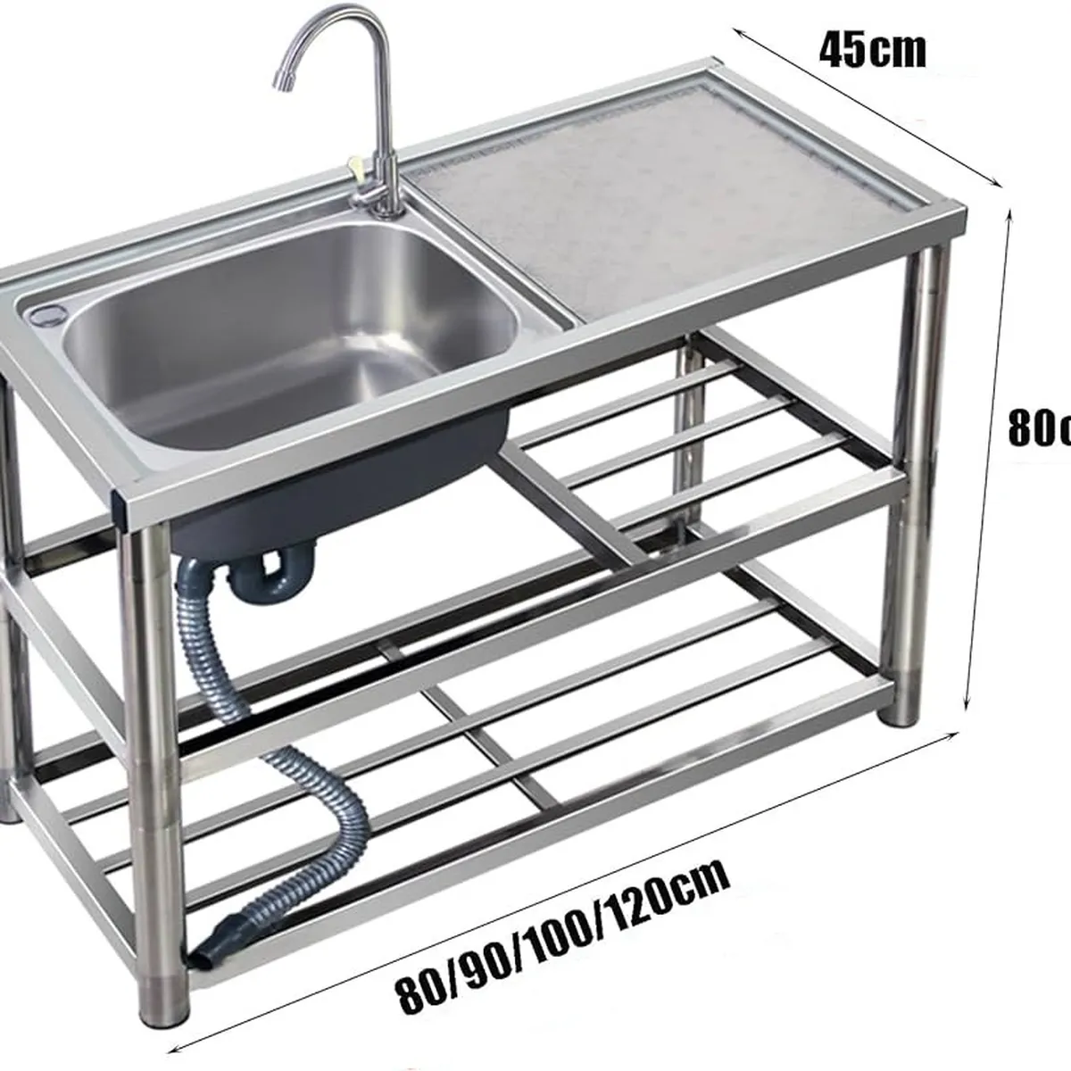 Điểm nhấn của sản phẩm là chân inox chắc chắn, giúp bạn linh hoạt trong việc sắp xếp vị trí chậu rửa. Bên dưới chậu còn có sàn để đồ, giúp tận dụng tối đa không gian lưu trữ trong bếp. Đây là một sự kết hợp hoàn hảo giữa tính năng và tính thẩm mỹ, phù hợp cho các bếp gia đình, phòng trọ hoặc chung cư mini.