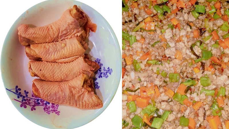 Còn món cổ gà xào nội tạng thì hấp dẫn hơn: xay nhuyễn cổ gà, xào với nội tạng gà, thịt heo xay và rau củ khoảng 10 phút. Để nguội, chia hộp bảo quản tủ lạnh dùng 2-3 ngày.