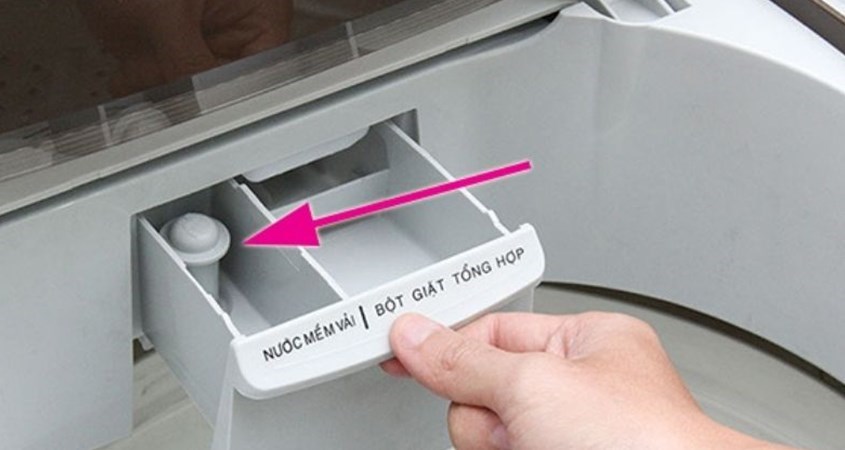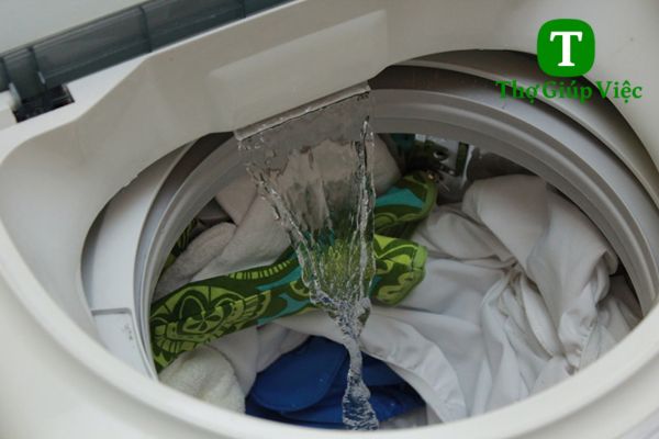 Còn máy lồng ngang thì tìm bộ lọc thoát nước ở đáy máy, thường có nắp nhỏ. Chuẩn bị khăn và chậu hứng, vặn mở bộ lọc vừa đủ để nước rỉ ra từ từ, đầy thì đóng lại đổ nước, làm lại vài lần cho sạch. Sau đó hạ máy xuống và xả nốt nước đọng bằng vật chứa thấp.