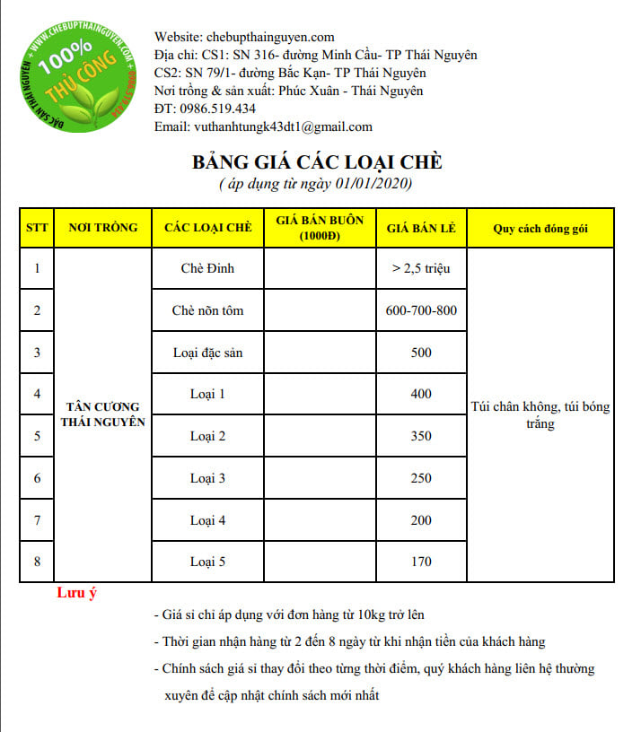 Chè Thái Nguyên từ lâu đã trở thành niềm tự hào của người Việt, không chỉ bởi hương vị đặc trưng mà còn nhờ chất lượng được đánh giá cao trên thị trường trà trong và ngoài nước. Nếu bạn đang tìm hiểu để mua chè Thái Nguyên, chắc hẳn sẽ quan tâm đến bảng giá mới nhất hiện nay, bởi mỗi loại chè lại có mức giá khác nhau tùy thuộc vào chất lượng, quy trình chế biến và thương hiệu.