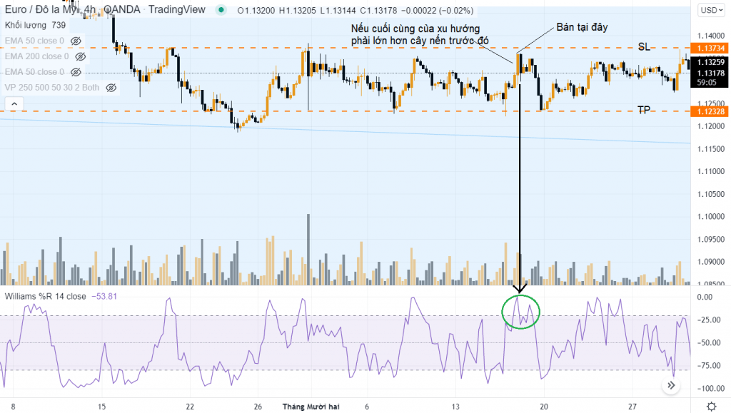 Cách sử dụng Williams %R khá đơn giản. Khi chỉ báo vượt lên trên mức -80 từ dưới lên, đó có thể là tín hiệu mua vì giá có khả năng hồi phục. Ngược lại, khi chỉ báo giảm xuống dưới -20 từ trên xuống, đó có thể là dấu hiệu bán vì giá có thể điều chỉnh giảm. Tuy nhiên, bạn nên nhớ rằng mua hay bán quá mức không đồng nghĩa với việc giá sẽ đảo chiều ngay lập tức, mà chỉ cho thấy giá đang ở gần đỉnh hoặc đáy trong phạm vi gần đây.