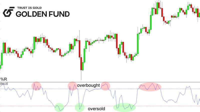 Williams %R dao động trong khoảng từ 0 đến -100, trong đó giá trị trên -20 cho thấy thị trường đang ở vùng mua quá mức (giá gần mức cao nhất), còn giá trị dưới -80 biểu thị vùng bán quá mức (giá gần mức thấp nhất). Tuy nhiên, mua hoặc bán quá mức không đồng nghĩa với việc giá sẽ đảo chiều ngay lập tức, mà chỉ là dấu hiệu cho thấy giá đang ở gần đỉnh hoặc đáy của phạm vi gần đây.
