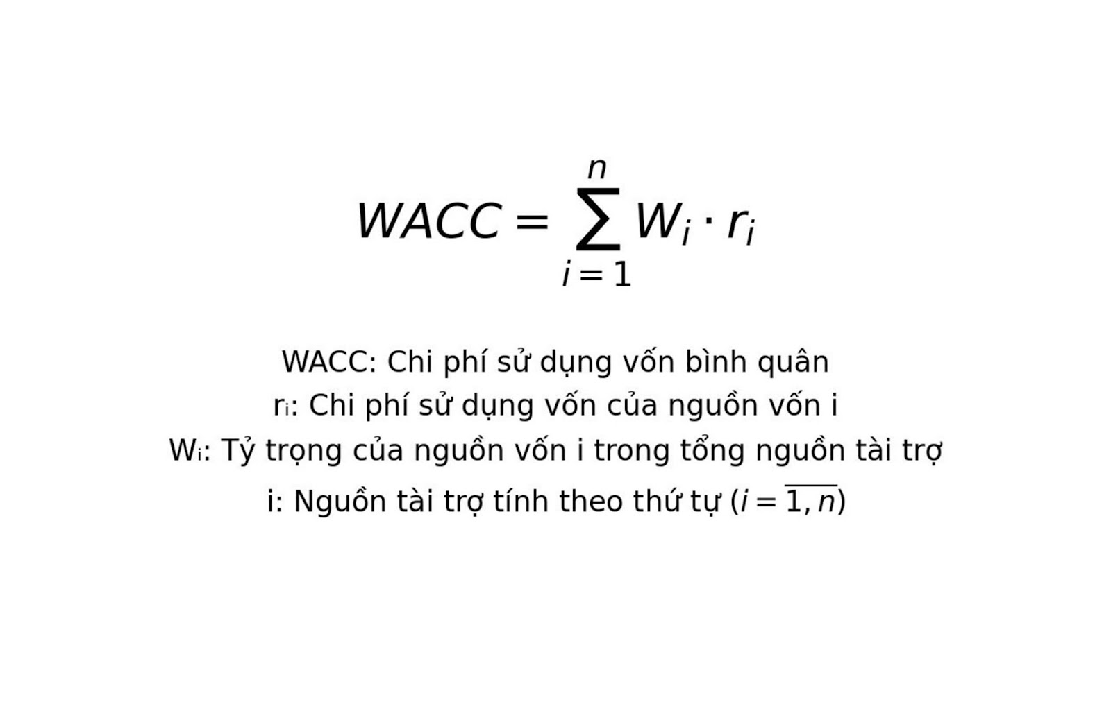 Chi phí sử dụng vốn bình quân gia quyền (WACC) là một chỉ số tài chính rất quan trọng giúp doanh nghiệp đánh giá chi phí tài chính của mình. WACC cho thấy mức chi phí sử dụng vốn sau thuế mà công ty phải chịu khi tài trợ cho các hoạt động. Để tính WACC, doanh nghiệp cần xác định các loại vốn mà họ sử dụng, bao gồm nợ và vốn chủ sở hữu, cùng với tỉ trọng của từng loại.
