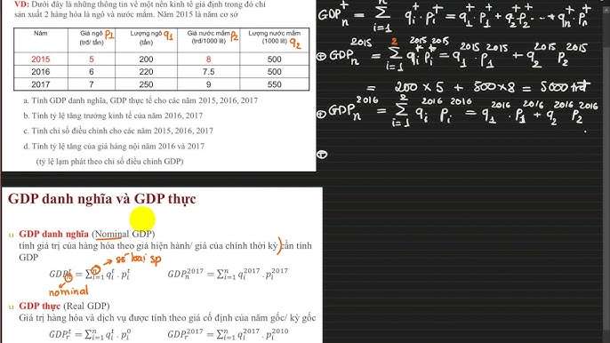 Bài tập tính chỉ số điều chỉnh GDP giúp chúng ta hiểu rõ hơn về sự biến động giá cả trong nền kinh tế qua các năm. Chỉ số điều chỉnh GDP, hay còn gọi là GDP deflator, đo lường mức giá trung bình của tất cả hàng hóa và dịch vụ được tính vào GDP, phản ánh sự thay đổi giá so với năm cơ sở. Công thức tính chỉ số này rất đơn giản: lấy GDP danh nghĩa chia cho GDP thực tế rồi nhân với 100 để dễ đọc hơn.