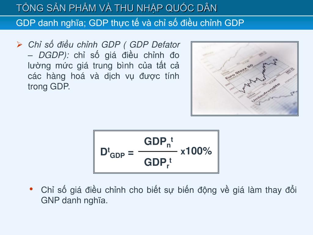 Tóm lại, chỉ số điều chỉnh GDP là một thước đo quan trọng để đánh giá sức khỏe kinh tế một cách chính xác hơn, giúp chúng ta hiểu rõ hơn về sự thay đổi giá cả và sản lượng trong nền kinh tế.